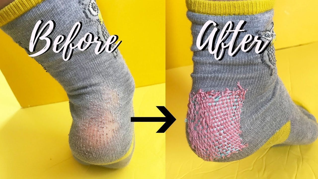 Darning is a traditional sewing technique used to repair holes or worn areas in fabric, by weaving a patch over the damaged area. It’s like sewing a tiny patch using just thread, almost like reweaving the fabric. 👇